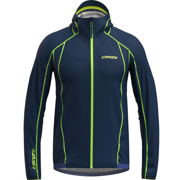 Tutte le cuciture sono nastrate ed elasticizzate per garantire la massima protezione dall'acqua e un comfort ottimale. Il cappuccio è regolabile con fascia in microfibra tergisudore e aletta rigida, assicurando una protezione efficace dalle intemperie. Due tasche posizionate sulla schiena, dotate di aletta di sicurezza, sono ideali per riporre guanti, berretti, barrette energetiche e gel durante la corsa. Inoltre, il sistema Shark, ideato da Crazy, offre aperture di areazione sotto le ascelle per evitare la formazione di condensa all'interno della giacca.