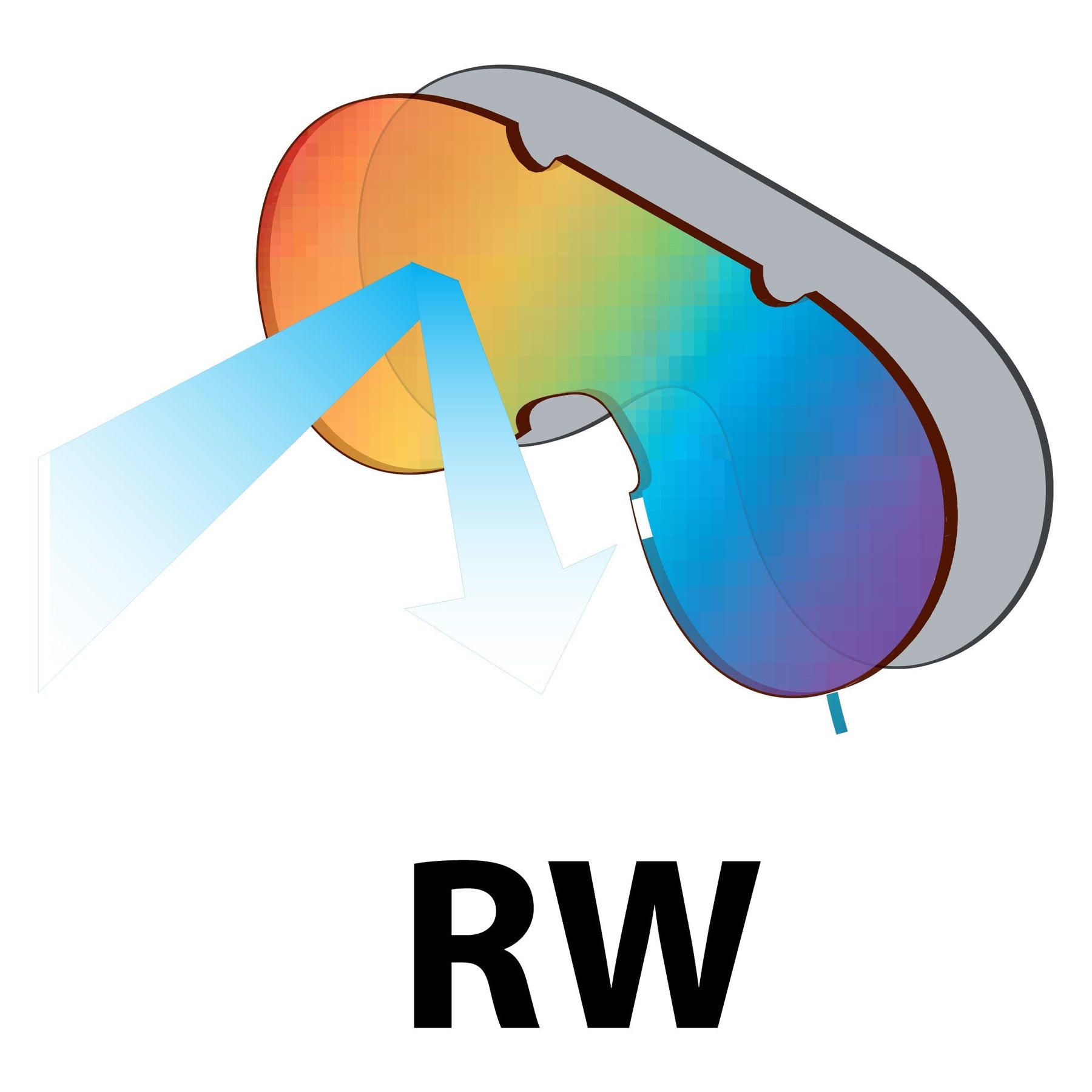 Le lenti arcobaleno antigraffio in policarbonato (RW) sono sottoposte a un processo di specchiatura superficiale per ridurre l'abbagliamento e l'abbagliamento dovuti a acqua, neve e ghiaccio. Il potere filtrante delle lenti è notevolmente migliorato.