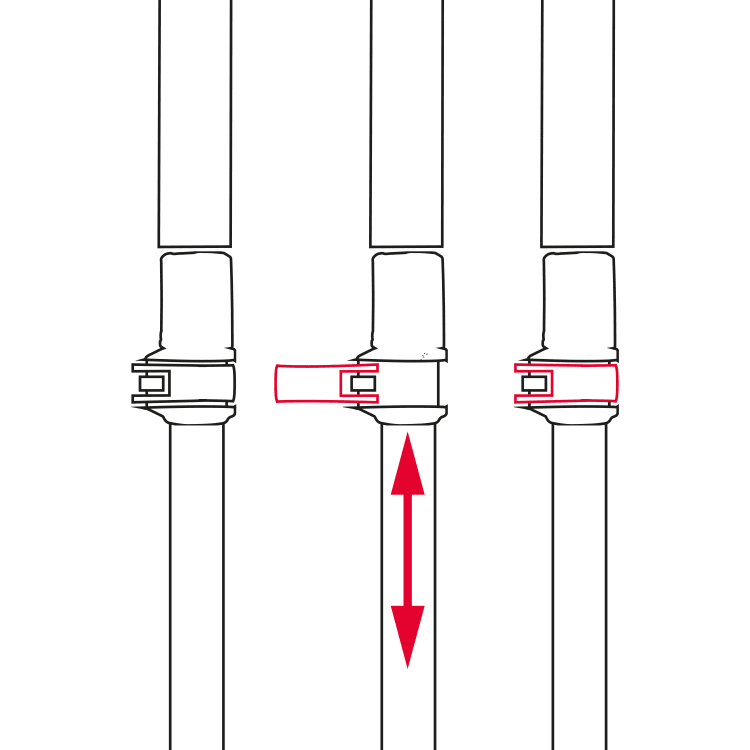 Il sistema di regolazione funziona come un morsetto esterno che consente una facile regolazione e assicura la massima forza di tenuta.